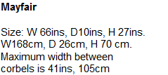 Other sizes Available Maximum width between corbels is 43ins, 109cm