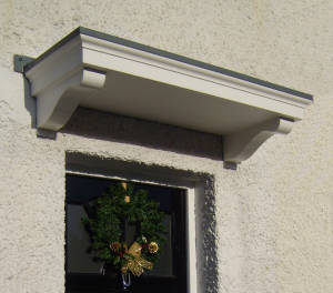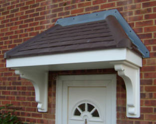 The Town House range of Door Canopies are available in a white finish with or without a grey lead effect flashing. Other colours available on request. |